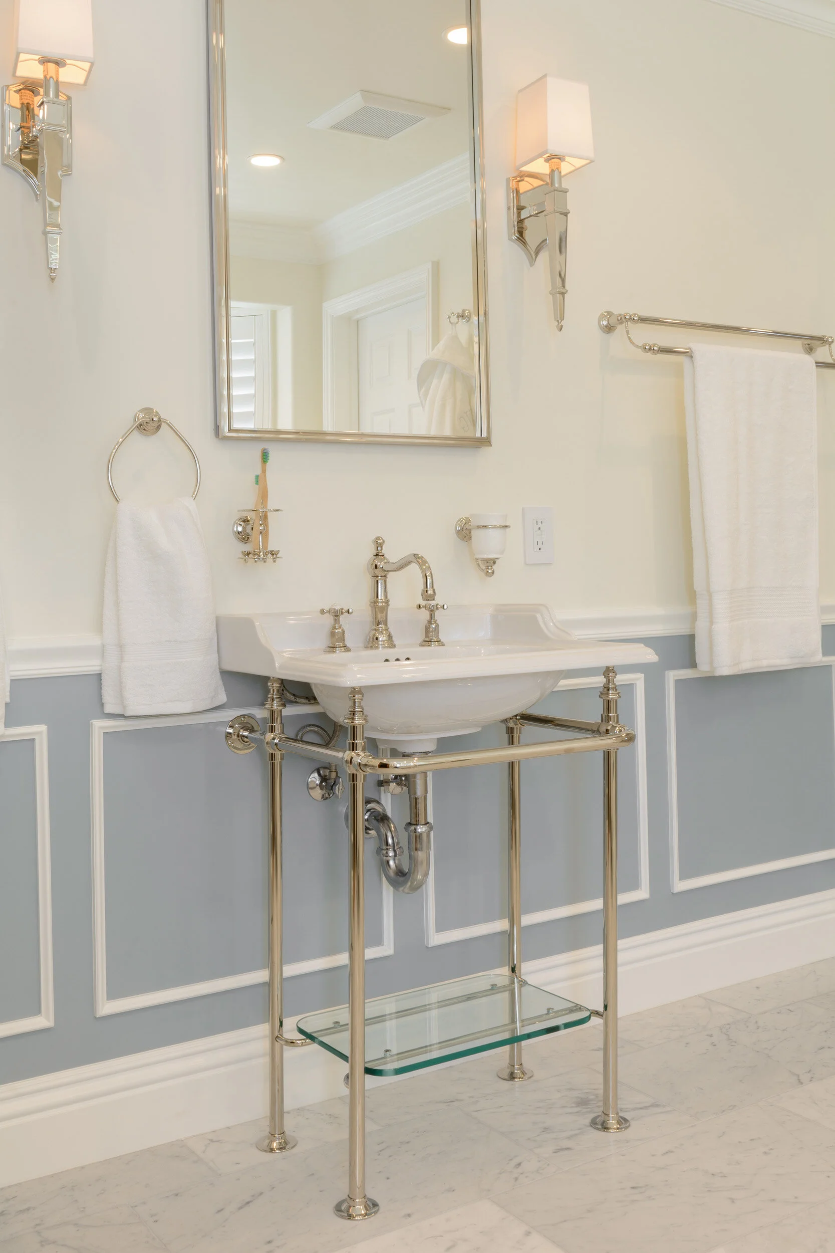 Pedestal sinks come in many styles and finishes ranging from the most modern to contemporary, transitional, and traditional. Whether your home is a Craftsman, Revival, Mid-Century, Ranch or Bungalow, there is a wide range of sinks available to perfectly fit the style of your home. The hardware you choose for your pedestal sink will add to the style you want to convey.